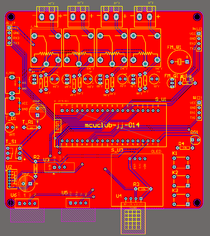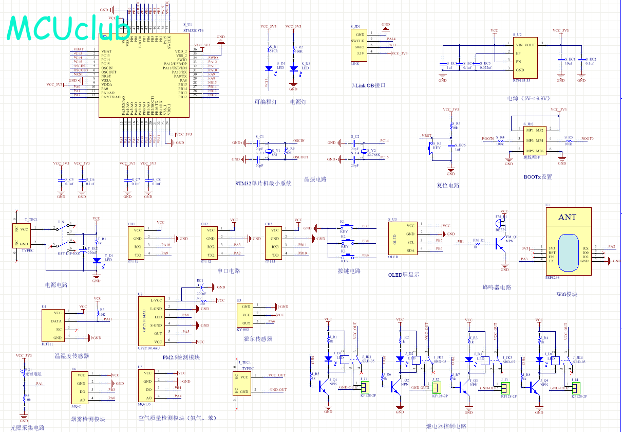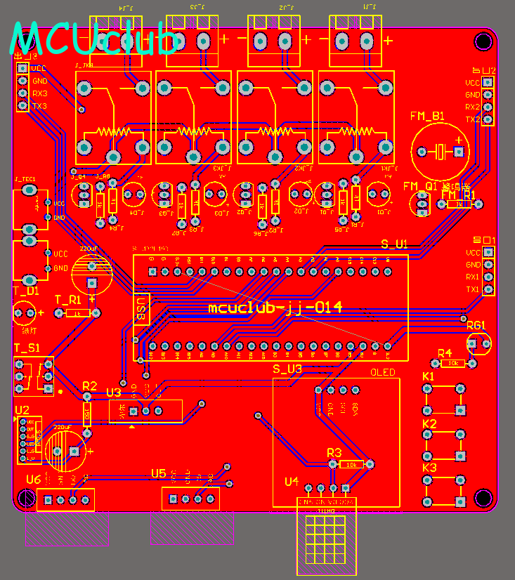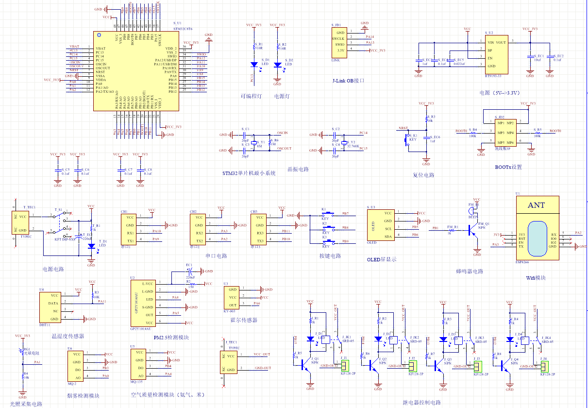 PCB图是由原理图导出,封装很大一部分都是作者自己绘制,不提供封装库,只提供连接好的源文件,可以直接在嘉立创进行打板。两层板,上下覆铜接地。