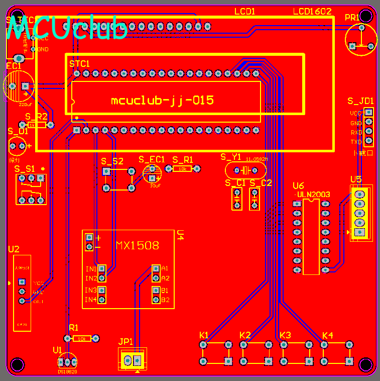 注意:PCB图中间有一个项目编号,隐藏在单片机底座下,插入单片机后不会看到。如果想截没有项目编号的PCB图,可在PCB源文件中点击删除。另外,如果想在实物PCB板上加自己的信息(比如日期、学号、姓名等),可联系客服。