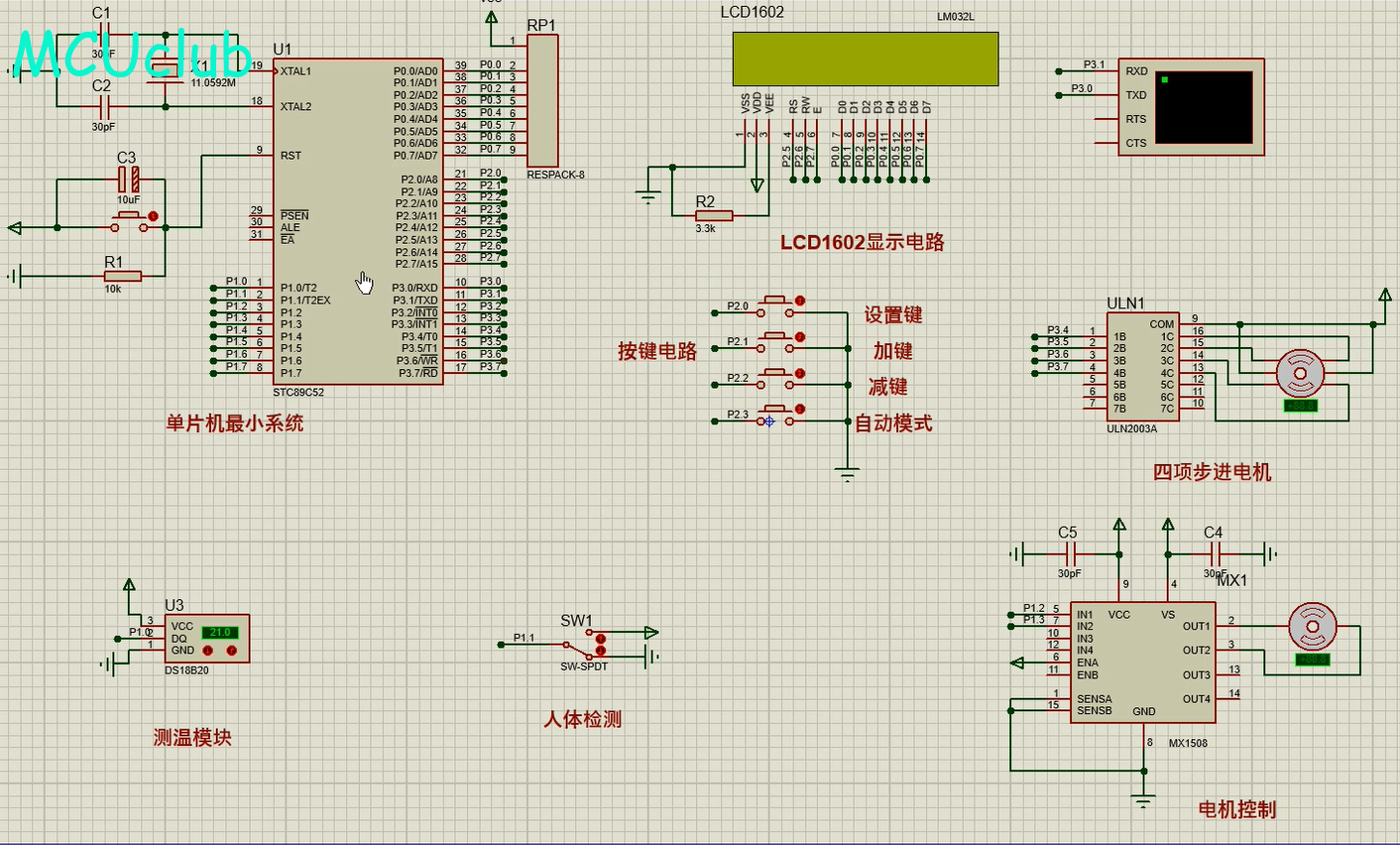 4、通过步进电机带动风扇,可模拟自动摇头,按键可以控制启停