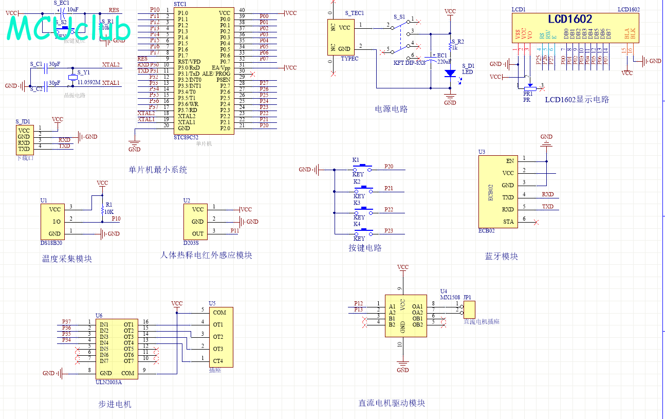 注意:原理图只是画出了模块的引脚图,而并不是模块的内部结构原理图