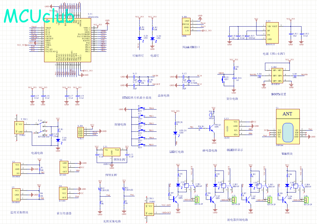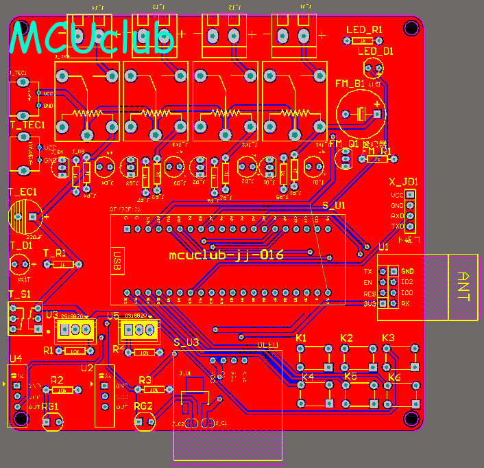 PCB图是由原理图导出,封装很大一部分都是作者自己绘制,不提供封装库,只提供连接好的源文件,可以直接在嘉立创进行打板。两层板,上下覆铜接地。