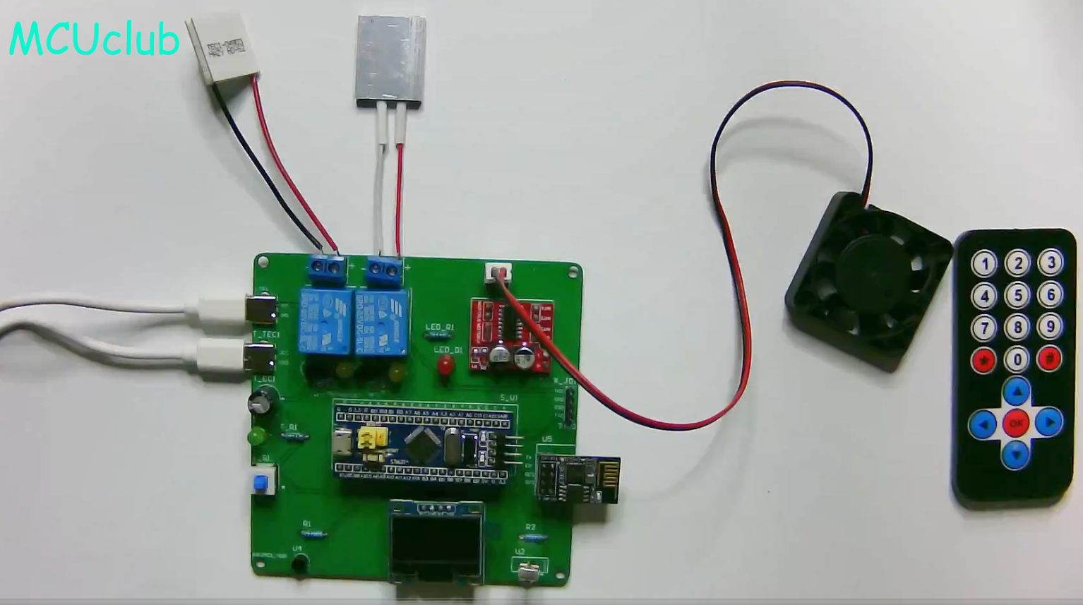 7、通过DS18B20测量温度,在制冷模式中,如果温度高于设置最大值,则启动制冷继电器制冷;在制热模式中,如果温度低于设置最小值,则启动制热继电器制热