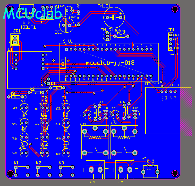 注意:PCB图中间有一个项目编号,隐藏在单片机底座下,插入单片机后不会看到。如果想截没有项目编号的PCB图,可在PCB源文件中点击删除。另外,如果想在实物PCB板上加自己的信息(比如日期、学号、姓名等),可联系客服。