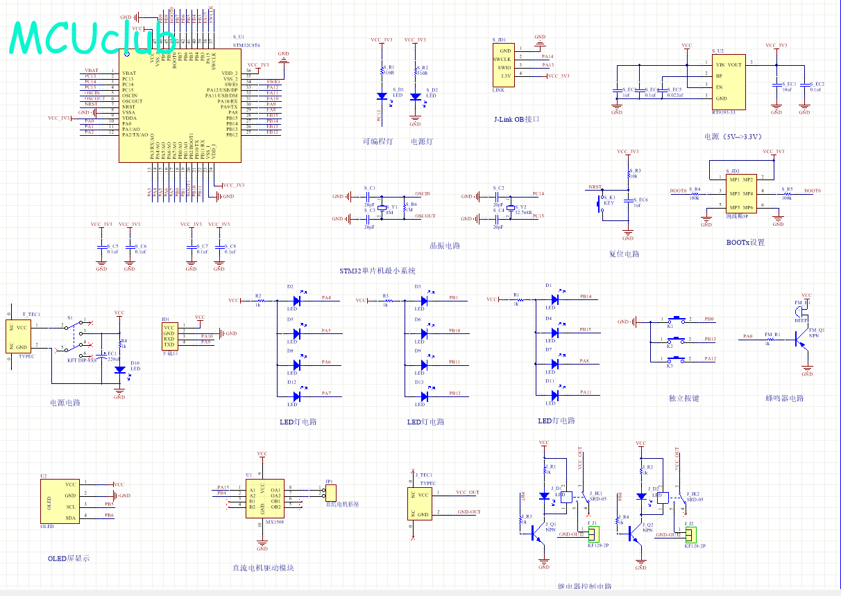 PCB图是由原理图导出,封装很大一部分都是作者自己绘制,不提供封装库,只提供连接好的源文件,可以直接在嘉立创进行打板。两层板,上下覆铜接地。