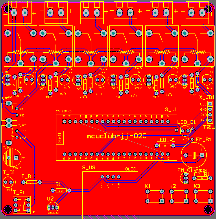 注意:PCB图中间有一个项目编号,隐藏在单片机底座下,插入单片机后不会看到。如果想截没有项目编号的PCB图,可在PCB源文件中点击删除。另外,如果想在实物PCB板上加自己的信息(比如日期、学号、姓名等),可联系客服。
