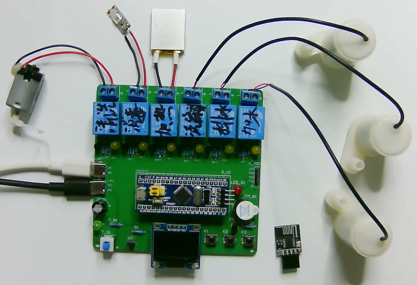 1、清洗过程:加水(5s)——加洗涤剂(3s)——加热(3s)——清洗(10s)——排水(5s)——加水(5s)——清洗(10s)——排水(5s)——加热烘干(3s)——消毒(3s)(6个继电器模拟)