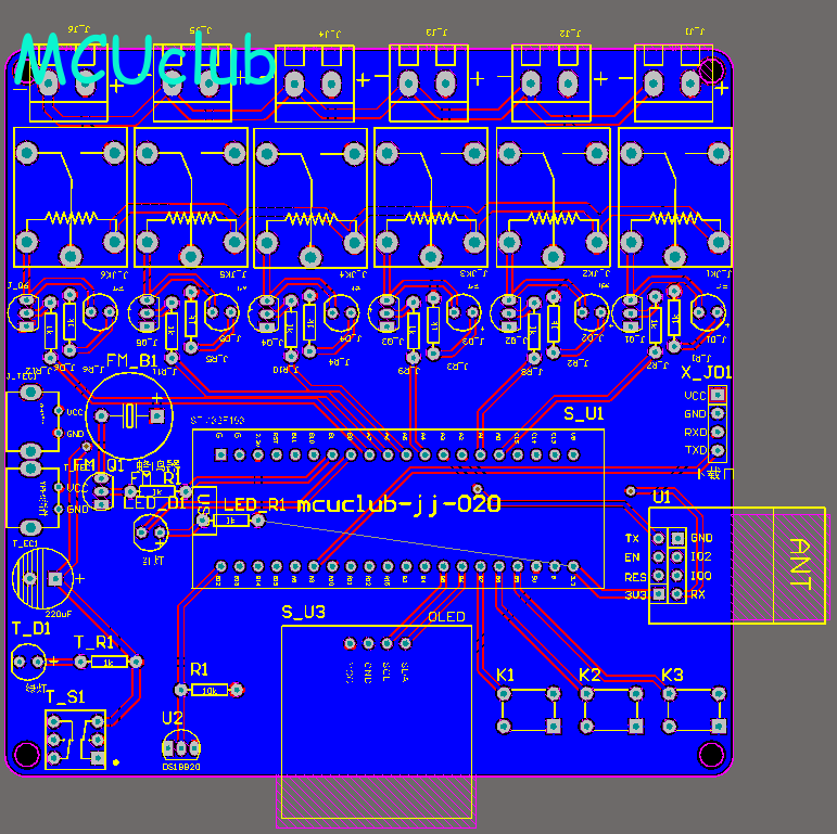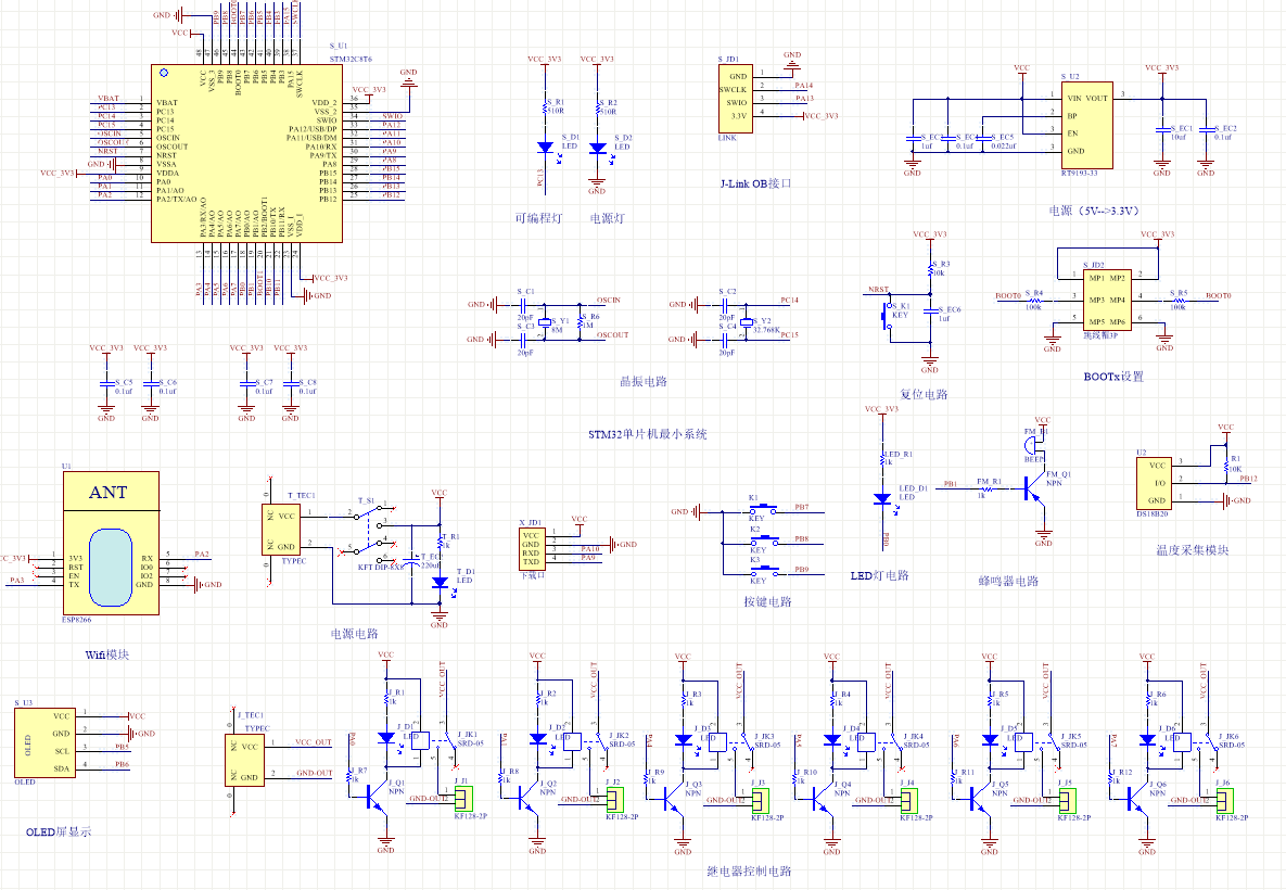 PCB图是由原理图导出,封装很大一部分都是作者自己绘制,不提供封装库,只提供连接好的源文件,可以直接在嘉立创进行打板。两层板,上下覆铜接地。
