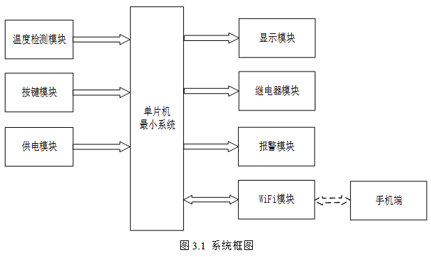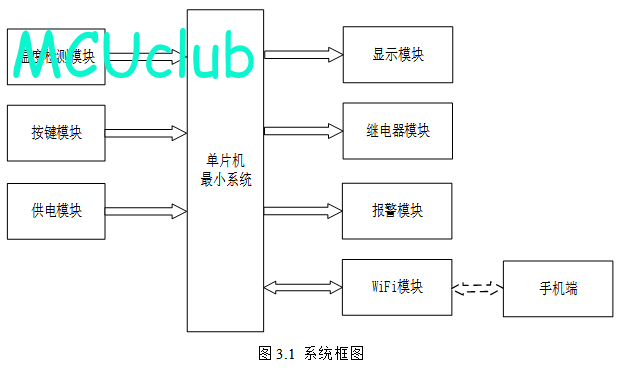 2、通过DS18B20检测温度,若温度高于设定最大阈值,进行声光报警,并结束清洗