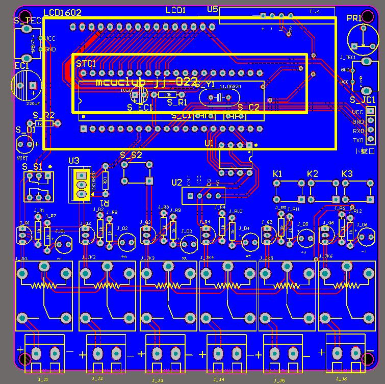 注意:PCB图中间有一个项目编号,隐藏在单片机底座下,插入单片机后不会看到。如果想截没有项目编号的PCB图,可在PCB源文件中点击删除。另外,如果想在实物PCB板上加自己的信息(比如日期、学号、姓名等),可联系客服。