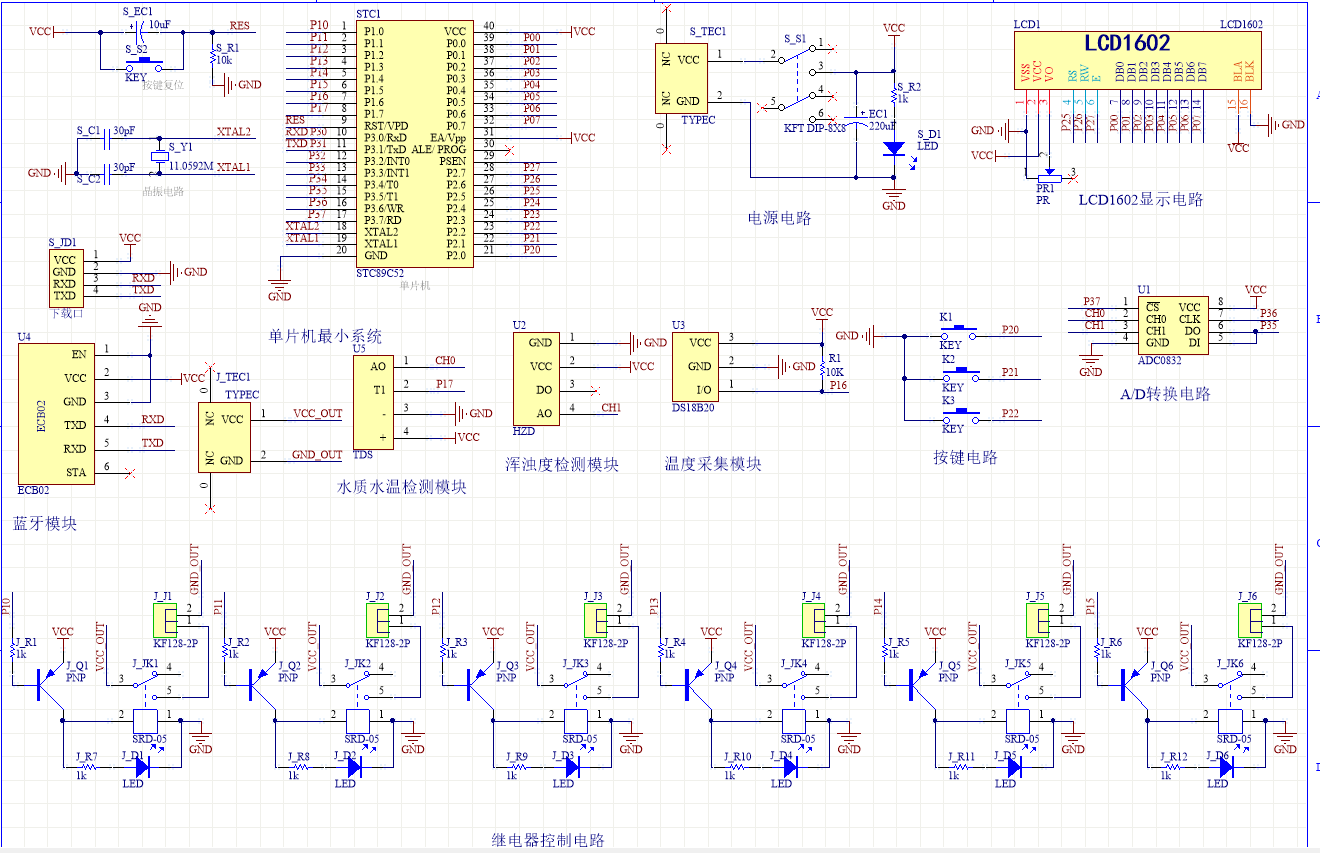 扩展功能:通过蓝牙模块将测量数据发送到手机端,并可以控制换水、加热、制冷、投喂、充氧以及模式切换