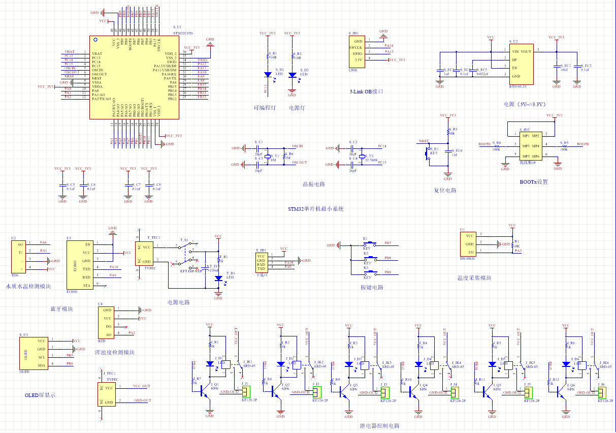 扩展功能:通过蓝牙模块将测量数据发送到手机端,并可以控制换水、加热、制冷、投喂、充氧以及模式切换