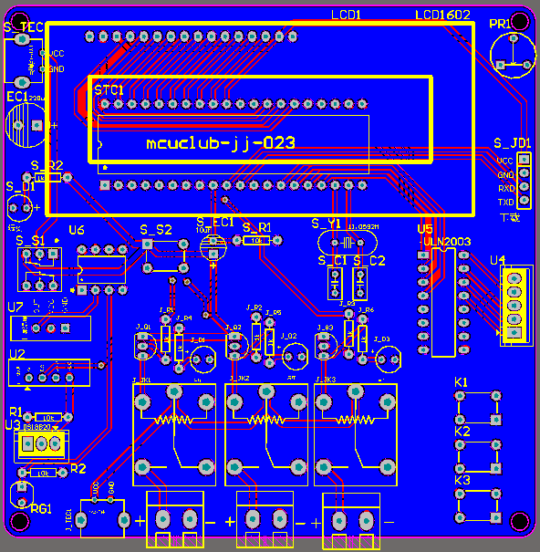 注意:PCB图中间有一个项目编号,隐藏在单片机底座下,插入单片机后不会看到。如果想截没有项目编号的PCB图,可在PCB源文件中点击删除。另外,如果想在实物PCB板上加自己的信息(比如日期、学号、姓名等),可联系客服。