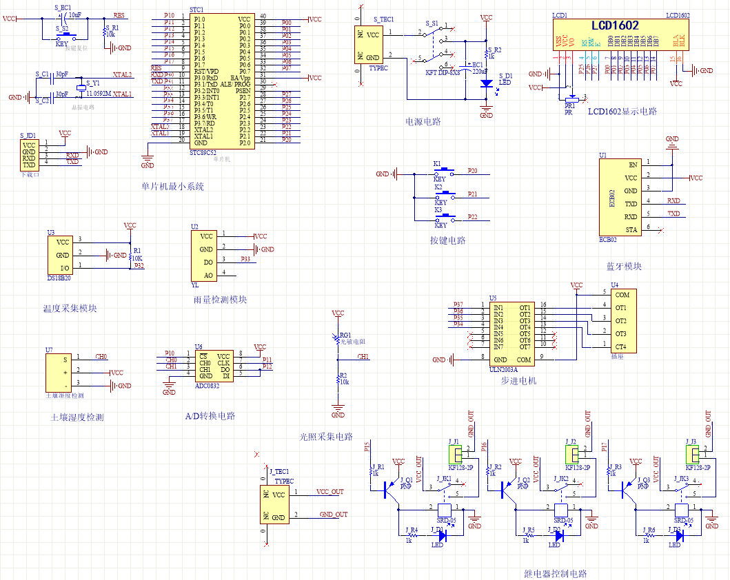 扩展功能:通过蓝牙模块将测量数据发送到手机端,并可以控制风扇、水泵、补光、遮光棚以及模式切换