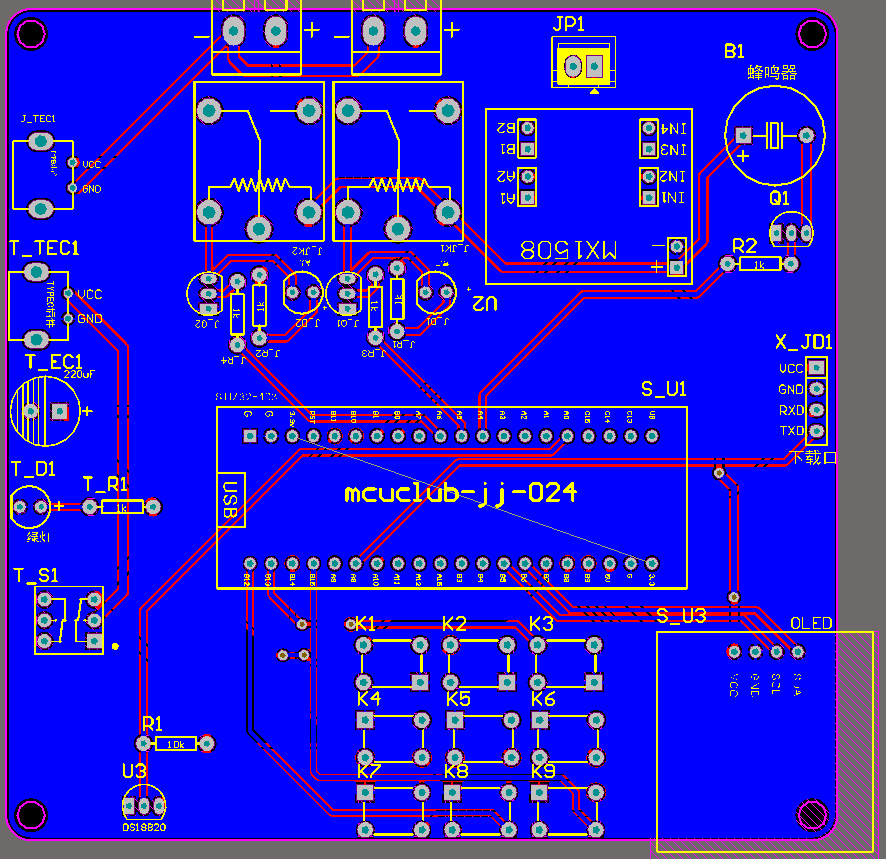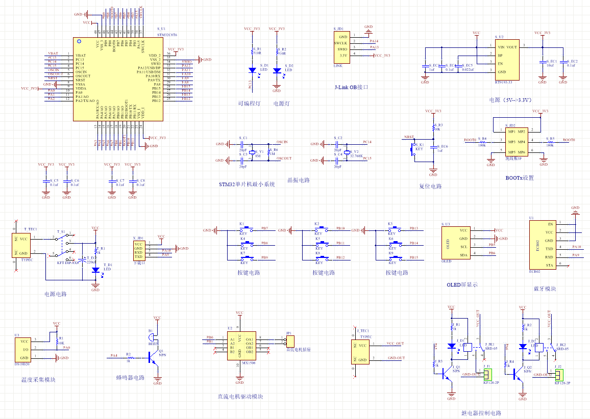 PCB图是由原理图导出,封装很大一部分都是作者自己绘制,不提供封装库,只提供连接好的源文件,可以直接在嘉立创进行打板。两层板,上下覆铜接地。