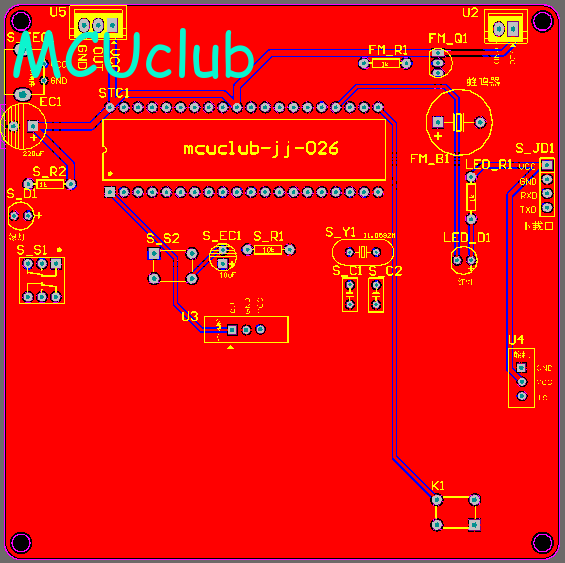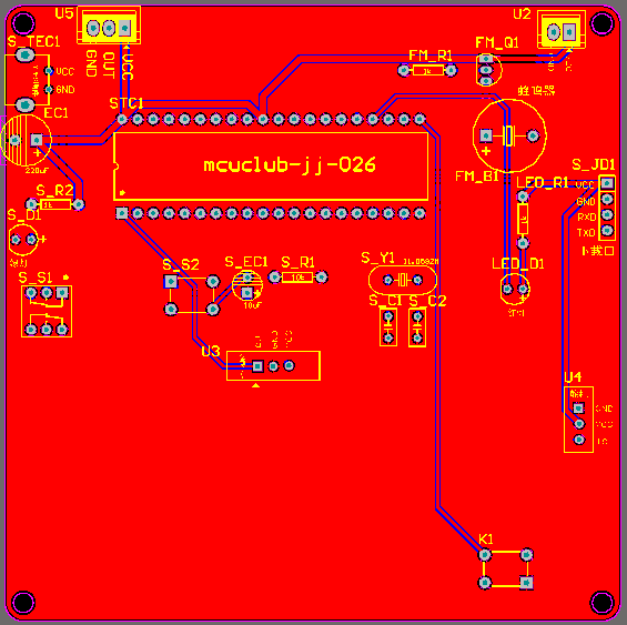 注意:PCB图中间有一个项目编号,隐藏在单片机底座下,插入单片机后不会看到。如果想截没有项目编号的PCB图,可在PCB源文件中点击删除。另外,如果想在实物PCB板上加自己的信息(比如日期、学号、姓名等),可联系客服。