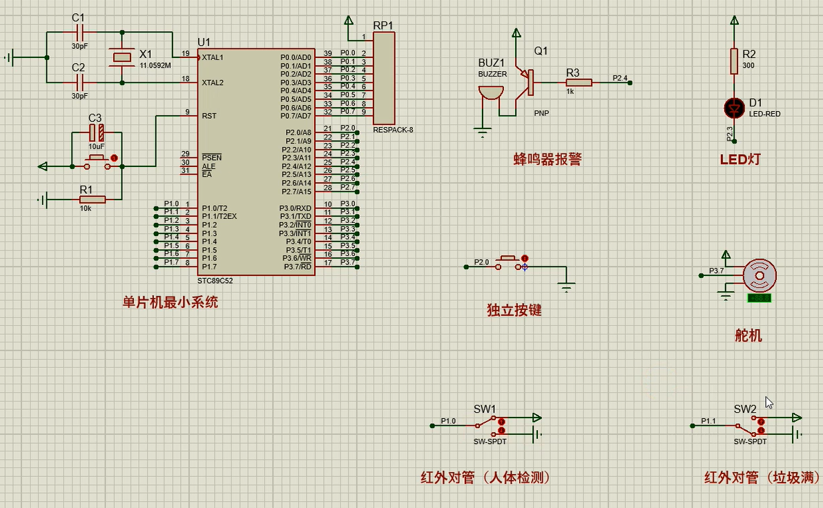 注意:部分实物元器件仿真中没有,仿真中会用其他工作原理相似的元件代替,这样可能导致实物程序和仿真程序不一样