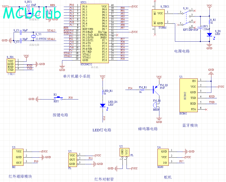 注意:原理图只是画出了模块的引脚图,而并不是模块的内部结构原理图