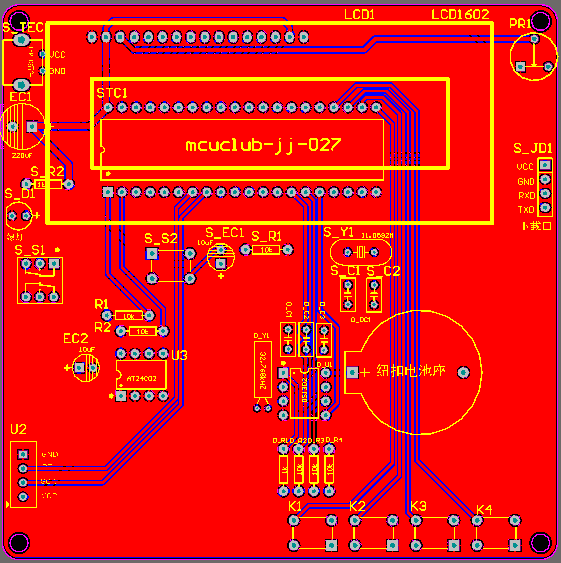 注意:PCB图中间有一个项目编号,隐藏在单片机底座下,插入单片机后不会看到。如果想截没有项目编号的PCB图,可在PCB源文件中点击删除。另外,如果想在实物PCB板上加自己的信息(比如日期、学号、姓名等),可联系客服。