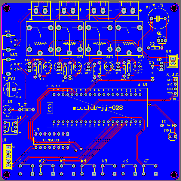 注意:PCB图中间有一个项目编号,隐藏在单片机底座下,插入单片机后不会看到。如果想截没有项目编号的PCB图,可在PCB源文件中点击删除。另外,如果想在实物PCB板上加自己的信息(比如日期、学号、姓名等),可联系客服。