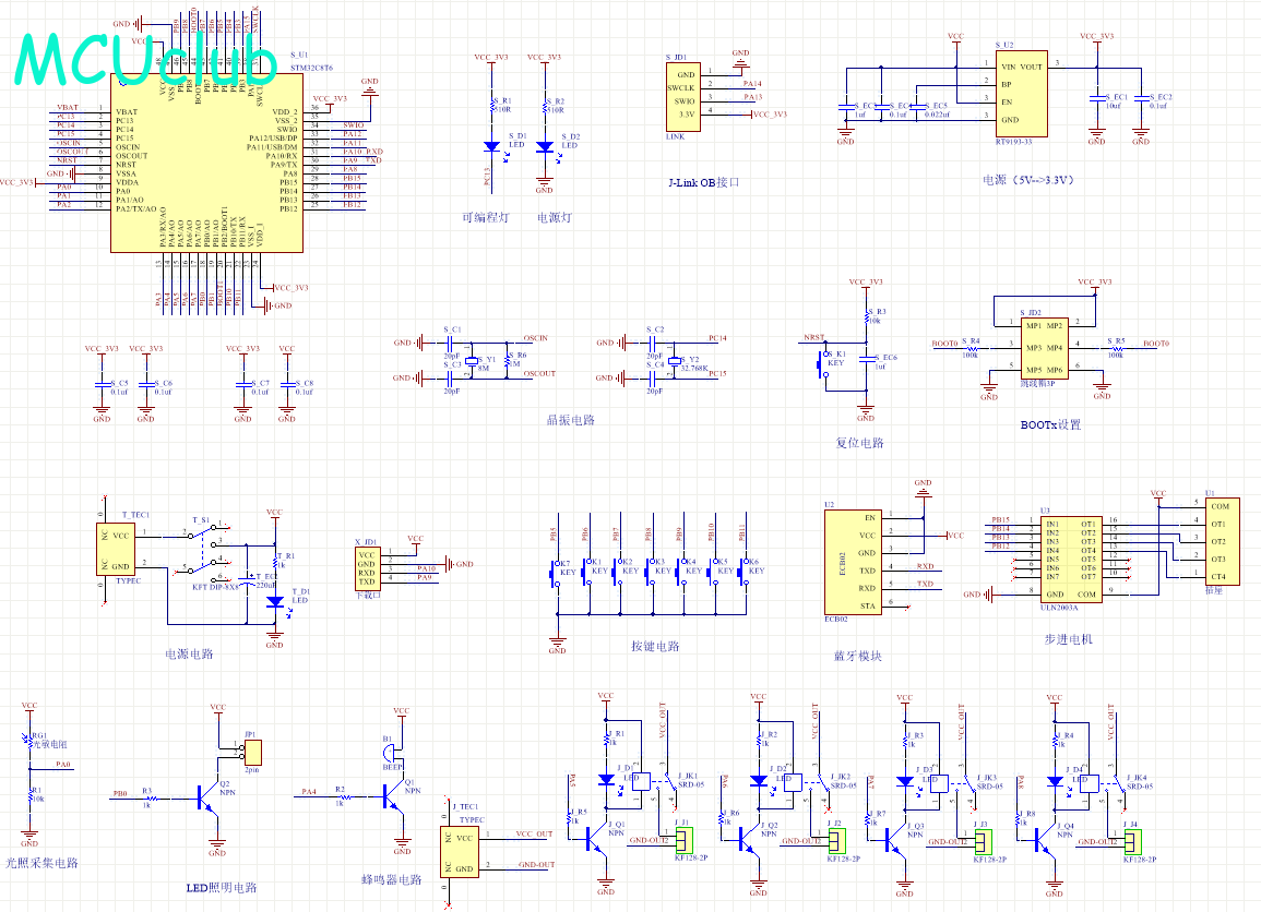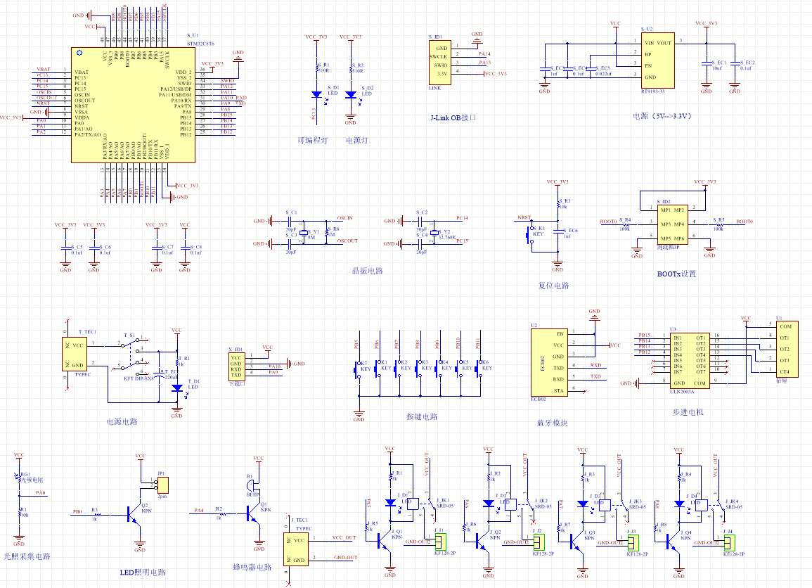 PCB图是由原理图导出,封装很大一部分都是作者自己绘制,不提供封装库,只提供连接好的源文件,可以直接在嘉立创进行打板。两层板,上下覆铜接地。