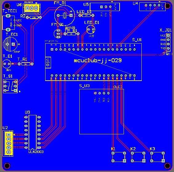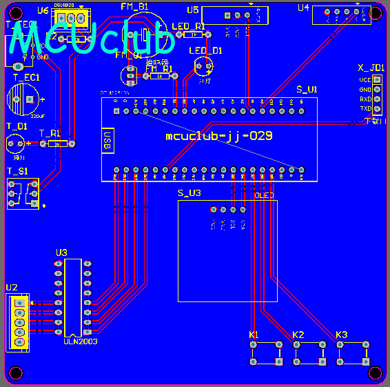 注意:PCB图中间有一个项目编号,隐藏在单片机底座下,插入单片机后不会看到。如果想截没有项目编号的PCB图,可在PCB源文件中点击删除。另外,如果想在实物PCB板上加自己的信息(比如日期、学号、姓名等),可联系客服。