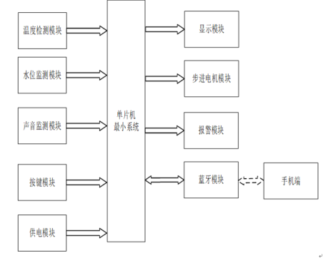 1、通过防水式温度传感器检测婴儿被窝内温度,当温度过高或过低,进行声光报警