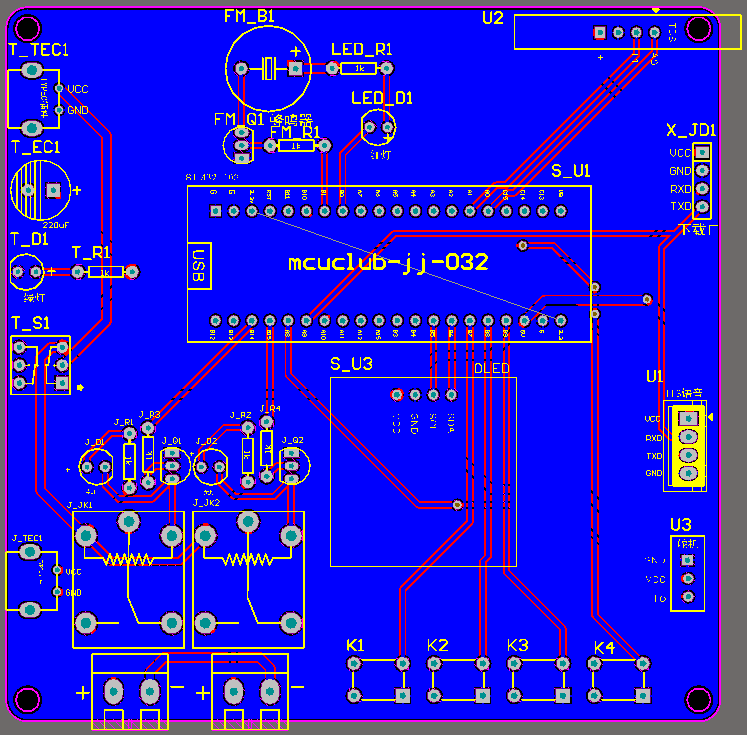 注意:PCB图中间有一个项目编号,隐藏在单片机底座下,插入单片机后不会看到。如果想截没有项目编号的PCB图,可在PCB源文件中点击删除。另外,如果想在实物PCB板上加自己的信息(比如日期、学号、姓名等),可联系客服。