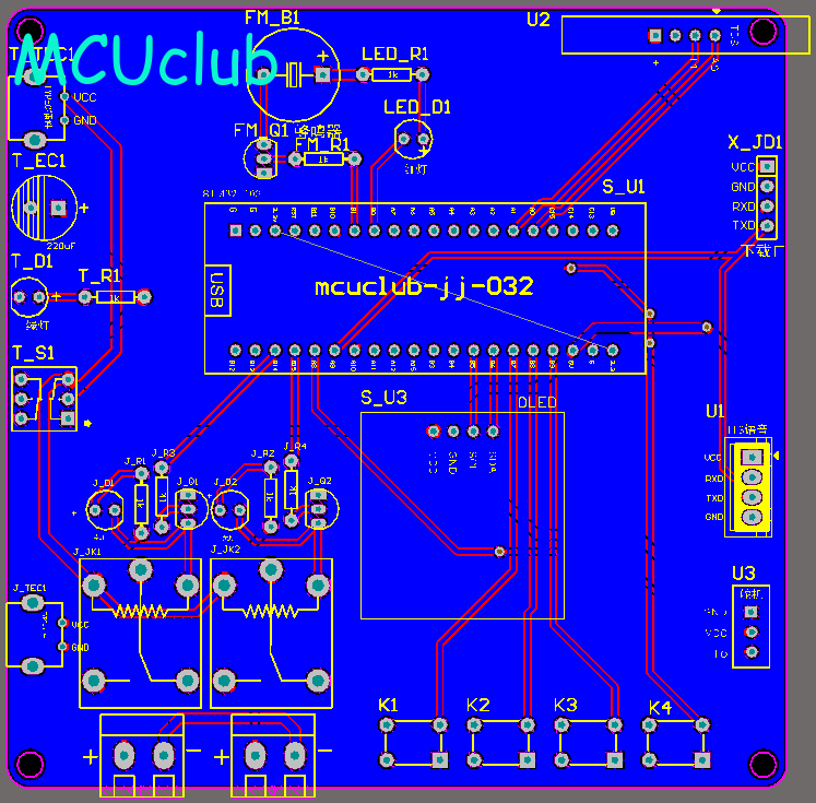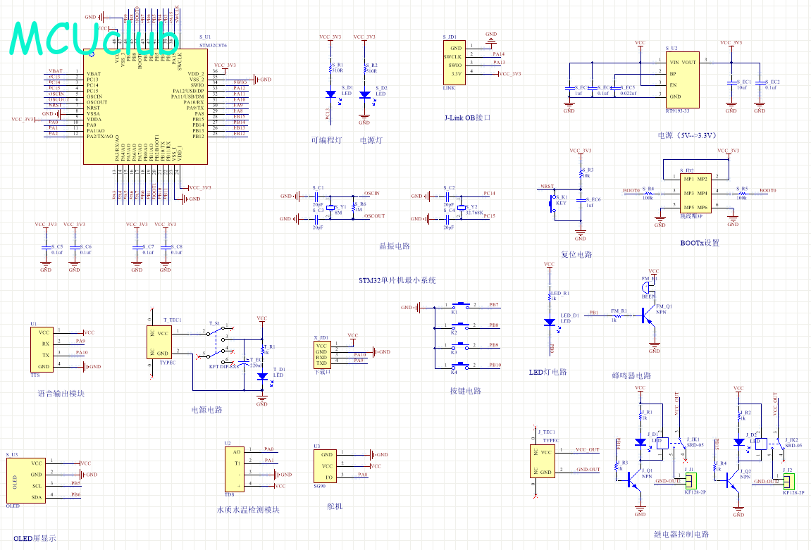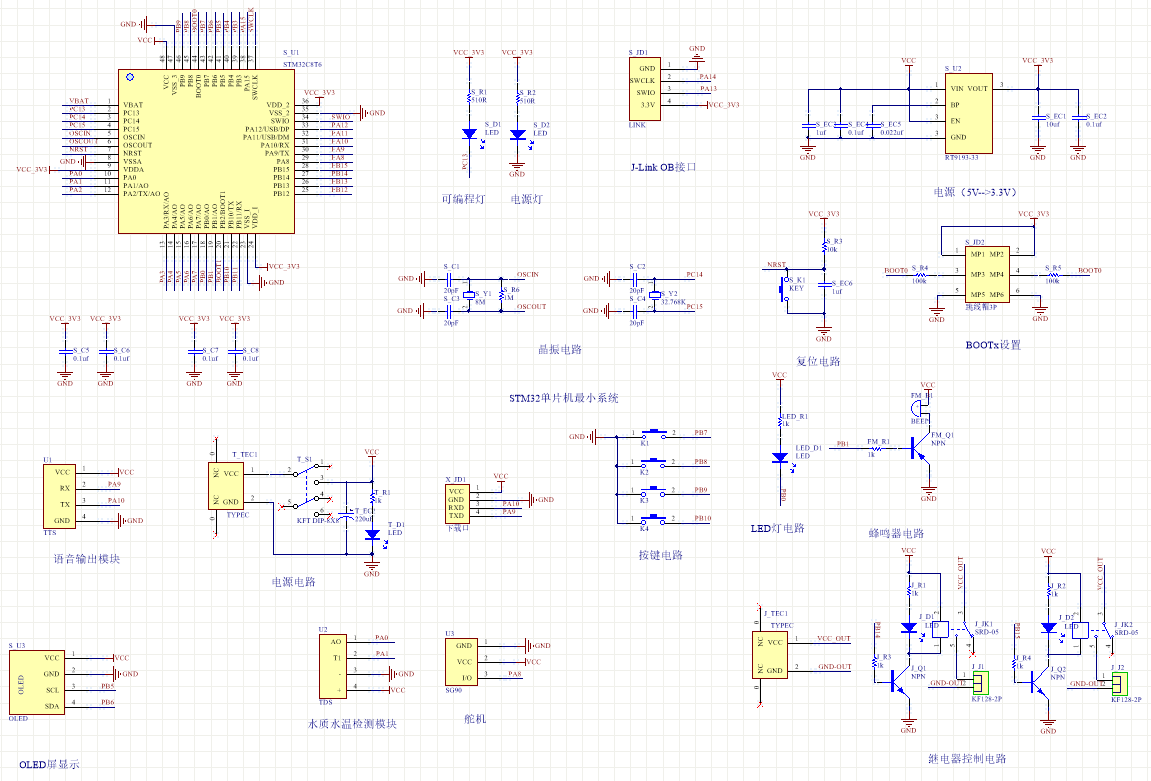 PCB图是由原理图导出,封装很大一部分都是作者自己绘制,不提供封装库,只提供连接好的源文件,可以直接在嘉立创进行打板。两层板,上下覆铜接地。
