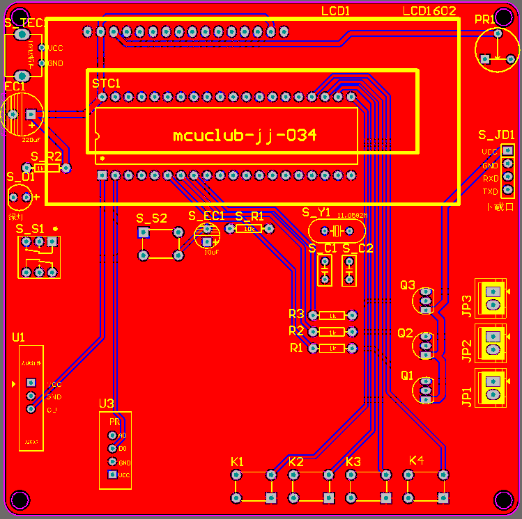 注意:PCB图中间有一个项目编号,隐藏在单片机底座下,插入单片机后不会看到。如果想截没有项目编号的PCB图,可在PCB源文件中点击删除。另外,如果想在实物PCB板上加自己的信息(比如日期、学号、姓名等),可联系客服。