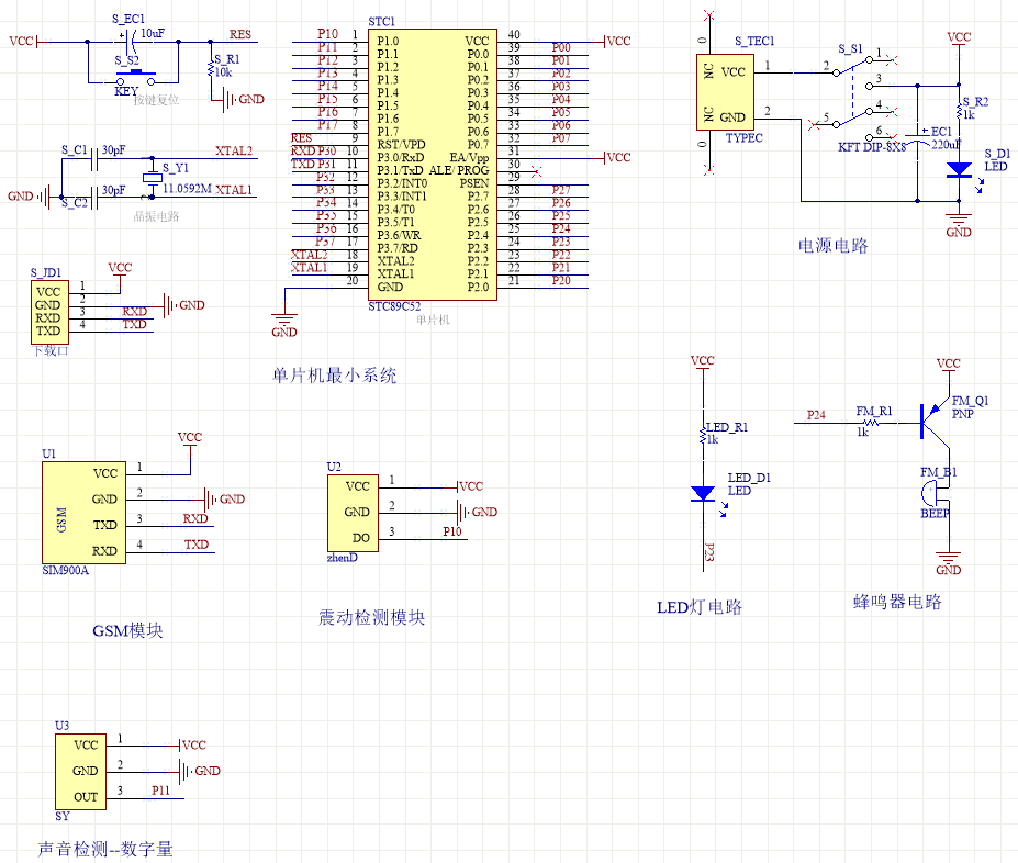 Key words:safe; Vibration detection module; Sound detection module; Sound and light alarm; GSM