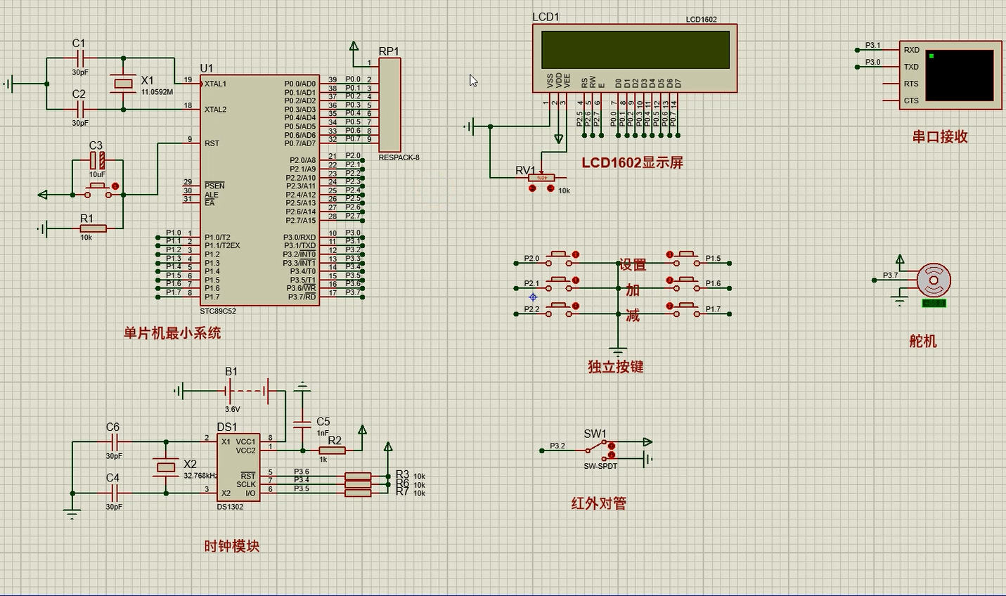 注意:部分实物元器件仿真中没有,仿真中会用其他工作原理相似的元件代替,这样可能导致实物程序和仿真程序不一样