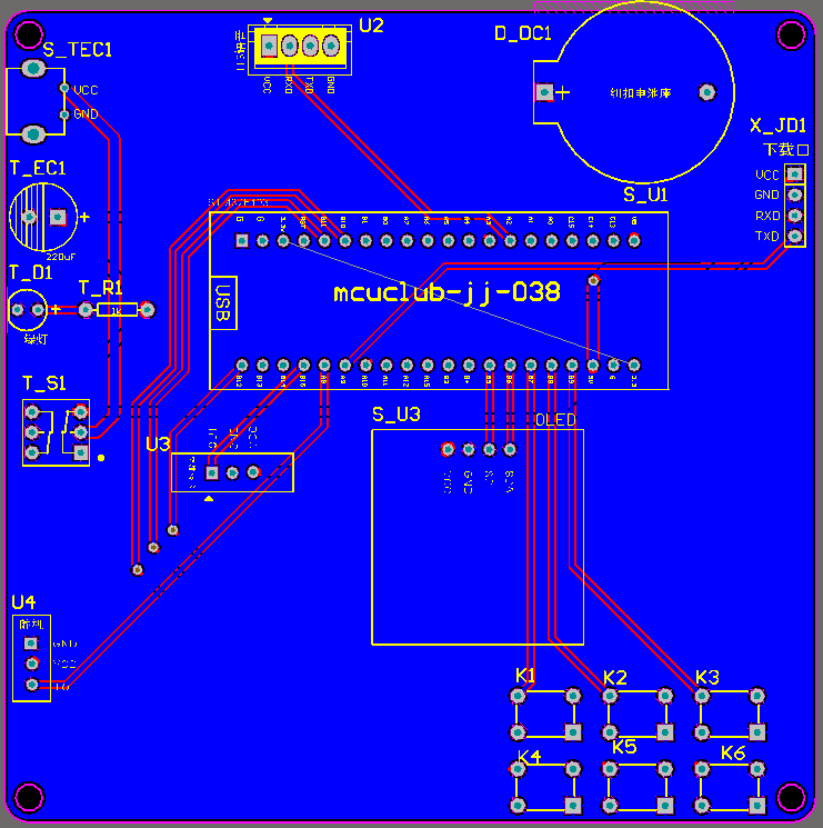 注意:PCB图中间有一个项目编号,隐藏在单片机底座下,插入单片机后不会看到。如果想截没有项目编号的PCB图,可在PCB源文件中点击删除。另外,如果想在实物PCB板上加自己的信息(比如日期、学号、姓名等),可联系客服。