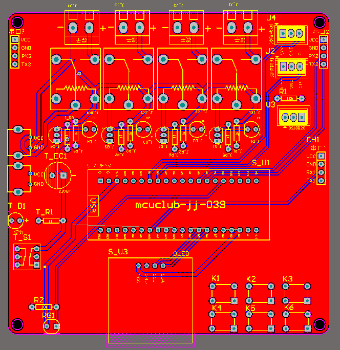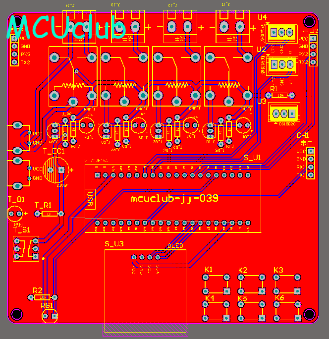 注意:PCB图中间有一个项目编号,隐藏在单片机底座下,插入单片机后不会看到。如果想截没有项目编号的PCB图,可在PCB源文件中点击删除。另外,如果想在实物PCB板上加自己的信息(比如日期、学号、姓名等),可联系客服。