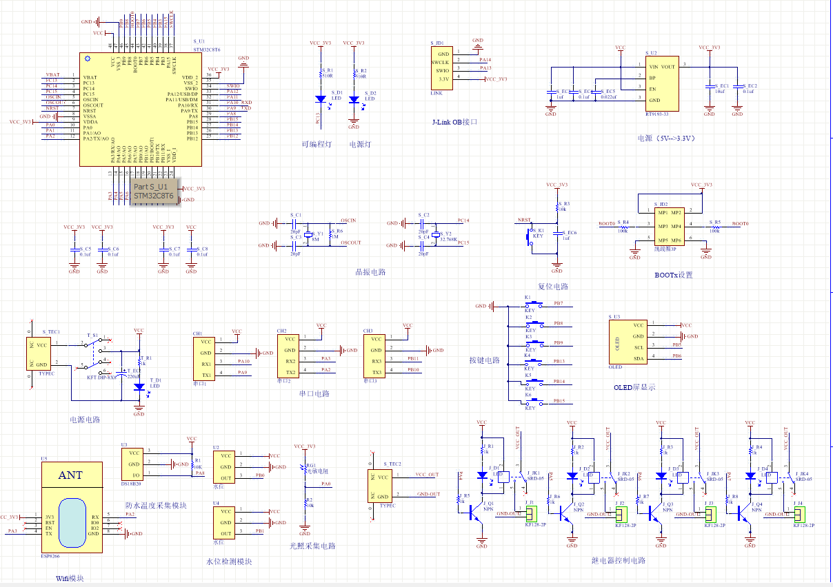 PCB图是由原理图导出,封装很大一部分都是作者自己绘制,不提供封装库,只提供连接好的源文件,可以直接在嘉立创进行打板。两层板,上下覆铜接地。