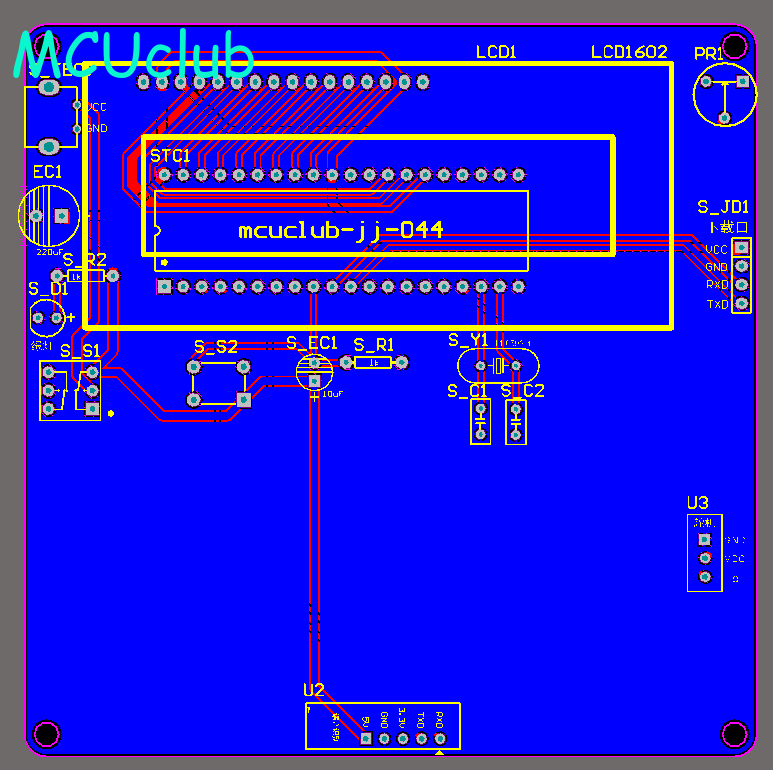 注意:PCB图中间有一个项目编号,隐藏在单片机底座下,插入单片机后不会看到。如果想截没有项目编号的PCB图,可在PCB源文件中点击删除。另外,如果想在实物PCB板上加自己的信息(比如日期、学号、姓名等),可联系客服。