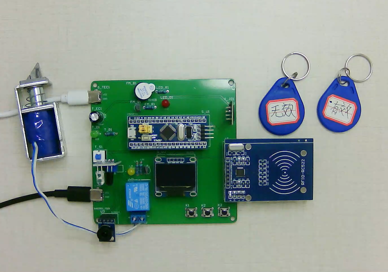 1、通过RFID进行刷卡进入(两张卡,一张录入ID,一张没有录入)