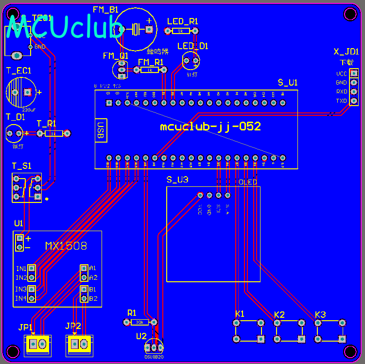 注意:PCB图中间有一个项目编号,隐藏在单片机底座下,插入单片机后不会看到。如果想截没有项目编号的PCB图,可在PCB源文件中点击删除。另外,如果想在实物PCB板上加自己的信息(比如日期、学号、姓名等),可联系客服。