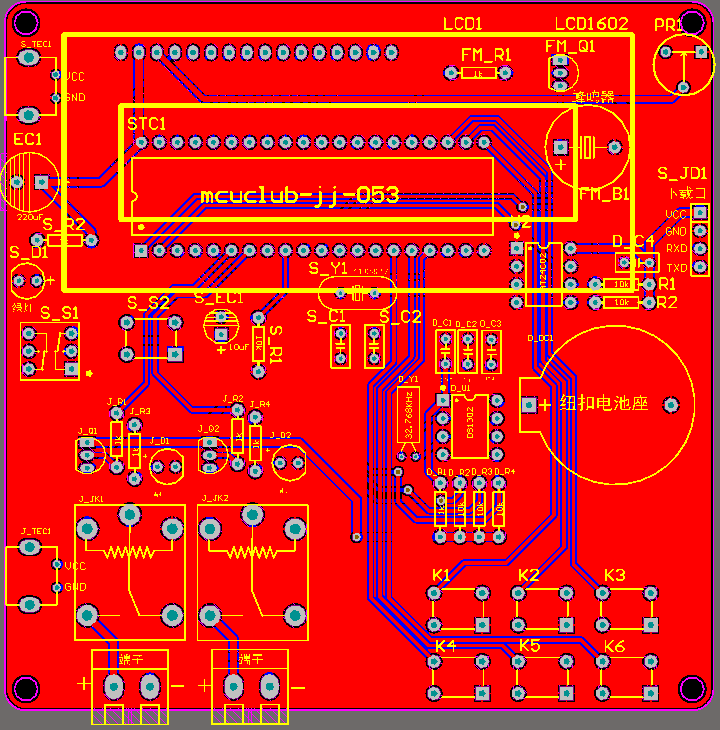 注意:PCB图中间有一个项目编号,隐藏在单片机底座下,插入单片机后不会看到。如果想截没有项目编号的PCB图,可在PCB源文件中点击删除。另外,如果想在实物PCB板上加自己的信息(比如日期、学号、姓名等),可联系客服。