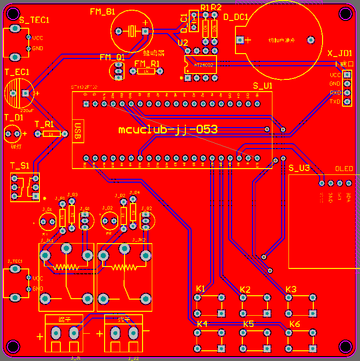 注意:PCB图中间有一个项目编号,隐藏在单片机底座下,插入单片机后不会看到。如果想截没有项目编号的PCB图,可在PCB源文件中点击删除。另外,如果想在实物PCB板上加自己的信息(比如日期、学号、姓名等),可联系客服。