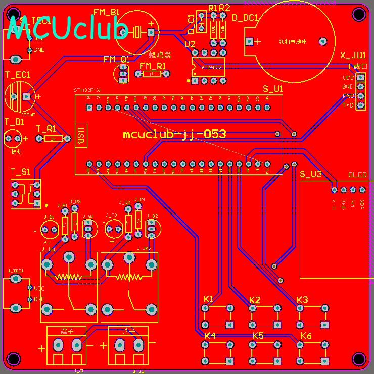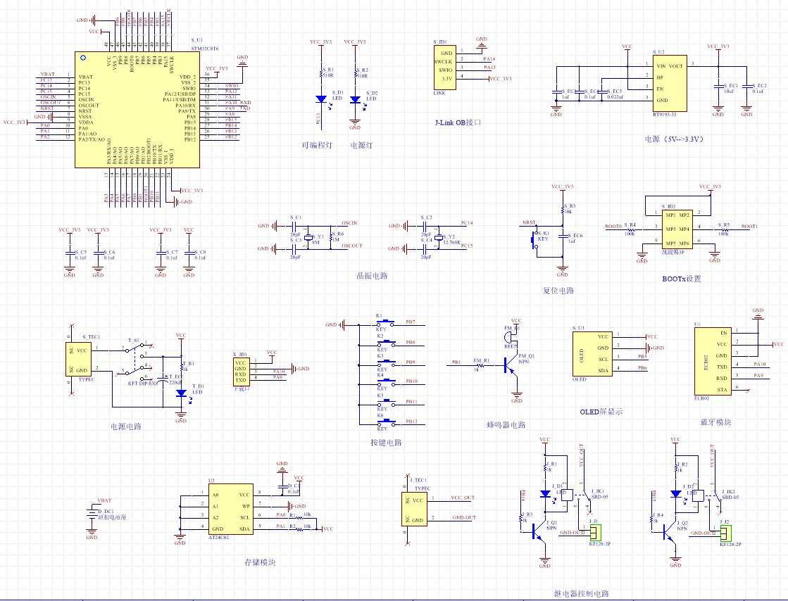 PCB图是由原理图导出,封装很大一部分都是作者自己绘制,不提供封装库,只提供连接好的源文件,可以直接在嘉立创进行打板。两层板,上下覆铜接地。