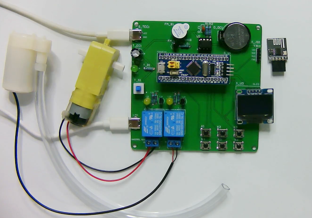 4、当投喂时间到达时,蜂鸣器报警提醒(2s),并开启两个继电器(喂食、喂水)