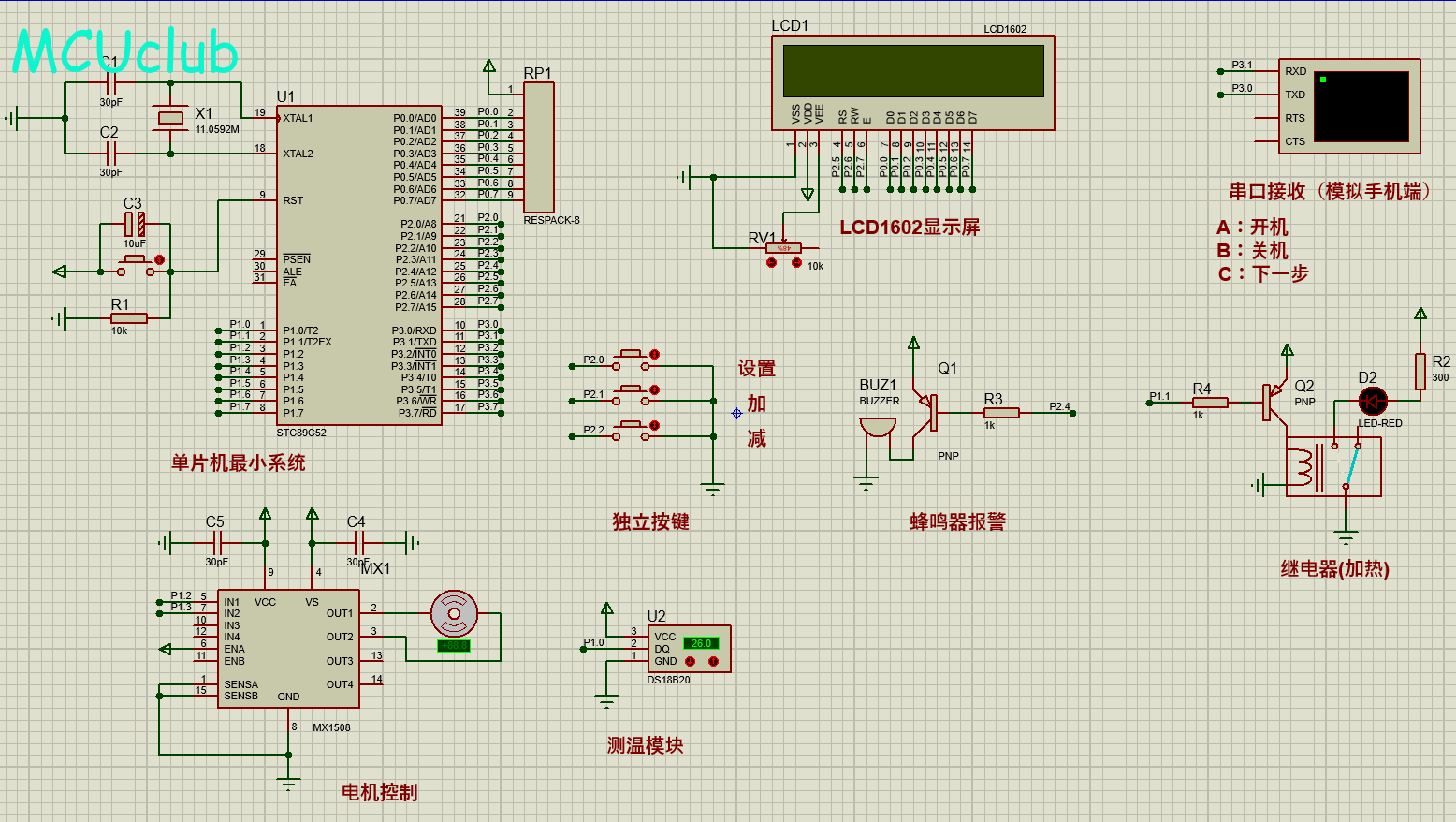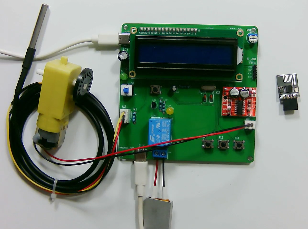 1、豆浆机工作流程:加热——粉碎1(慢速)——加热——粉碎2(快速)——加热——完成(蜂鸣器报警3次)