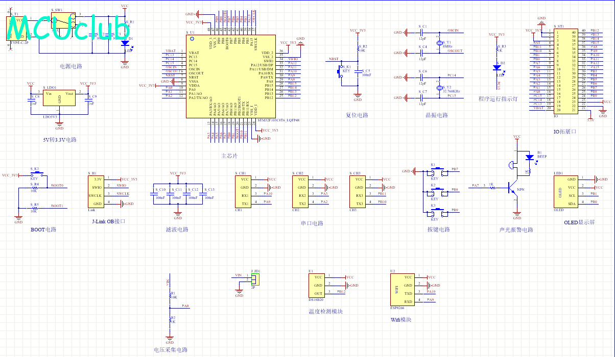 PCB图是由原理图导出,封装很大一部分都是作者自己绘制,不提供封装库,只提供连接好的源文件,可以直接在嘉立创进行打板。两层板,上下覆铜接地。