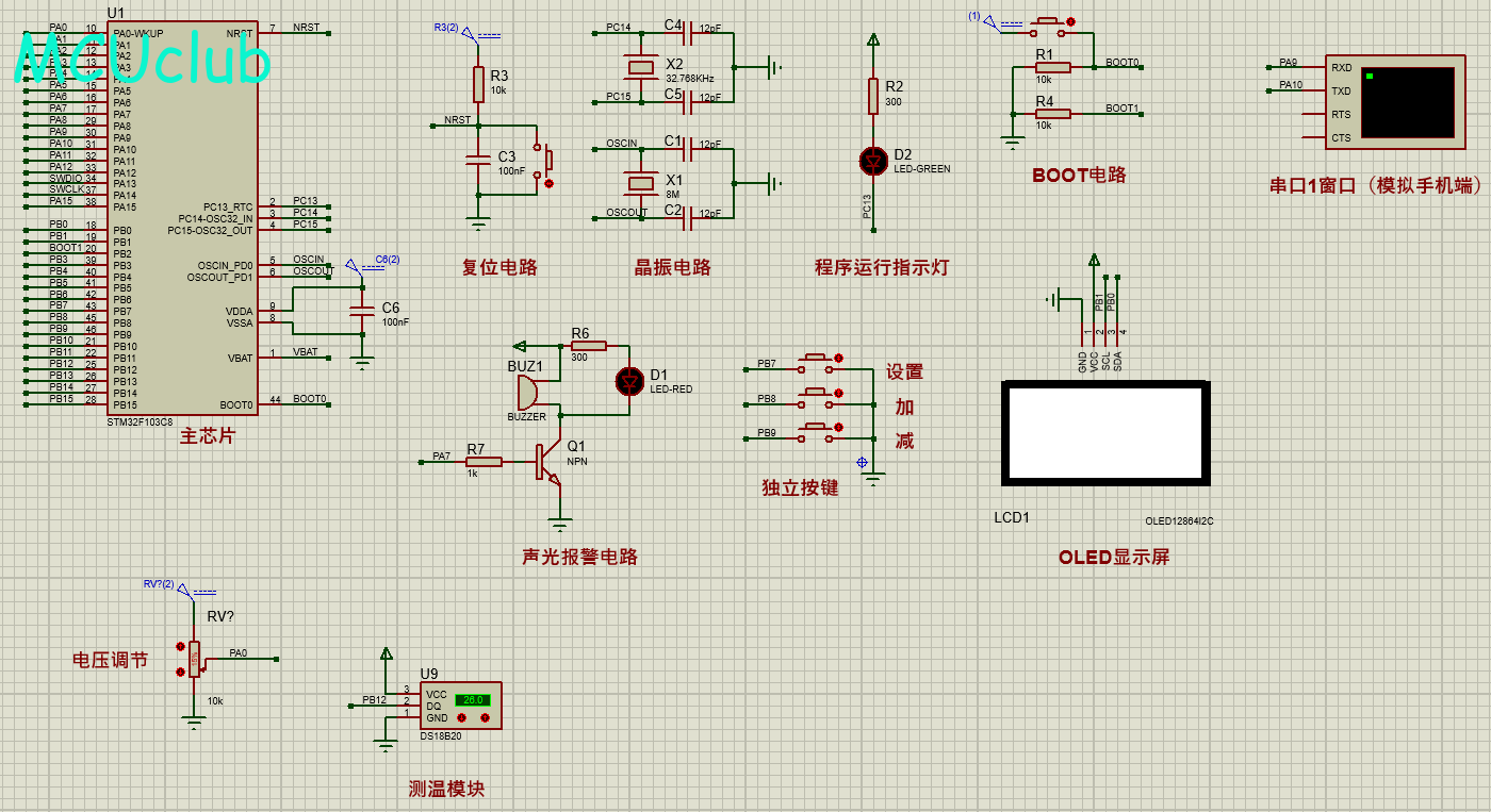 注意:部分实物元器件仿真中没有,仿真中会用其他工作原理相似的元件代替,这样可能导致实物程序和仿真程序不一样