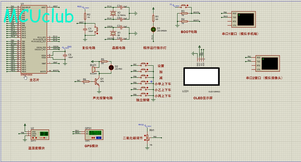 注意:部分实物元器件仿真中没有,仿真中会用其他工作原理相似的元件代替,这样可能导致实物程序和仿真程序不一样