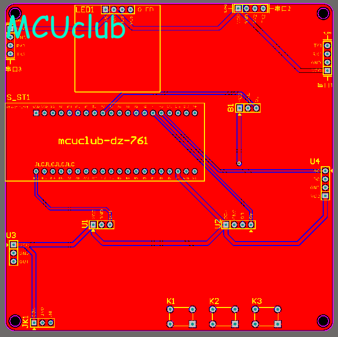 注意:PCB图中间有一个项目编号,隐藏在单片机底座下,插入单片机后不会看到。如果想截没有项目编号的PCB图,可在PCB源文件中点击删除。另外,如果想在实物PCB板上加自己的信息(比如日期、学号、姓名等),可联系客服。