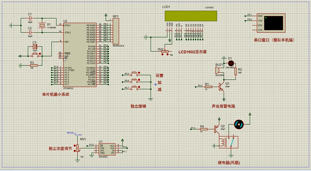 注意:部分实物元器件仿真中没有,仿真中会用其他工作原理相似的元件代替,这样可能导致实物程序和仿真程序不一样