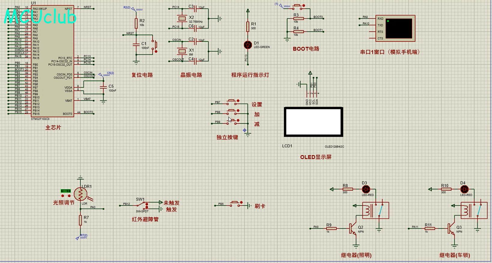注意:部分实物元器件仿真中没有,仿真中会用其他工作原理相似的元件代替,这样可能导致实物程序和仿真程序不一样
