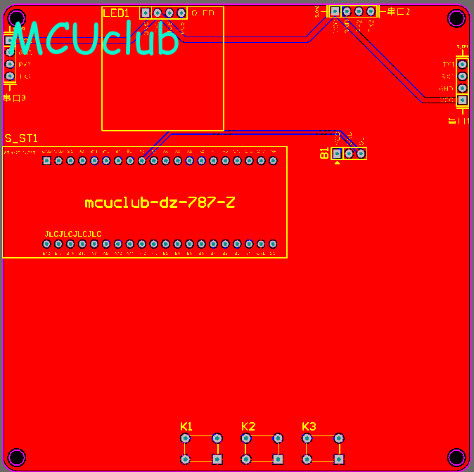 注意:PCB图中间有一个项目编号,隐藏在单片机底座下,插入单片机后不会看到。如果想截没有项目编号的PCB图,可在PCB源文件中点击删除。另外,如果想在实物PCB板上加自己的信息(比如日期、学号、姓名等),可联系客服。