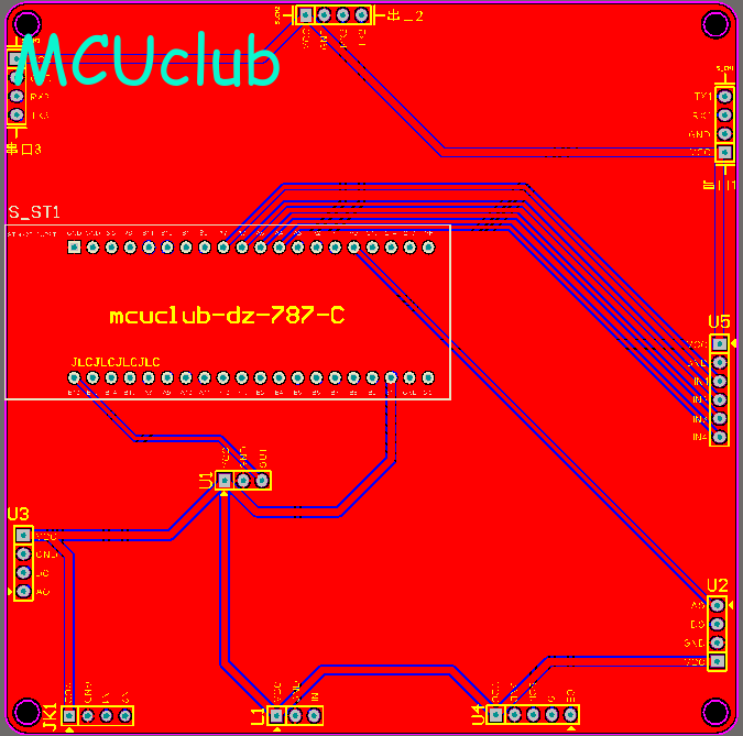 PCB图是由原理图导出,封装很大一部分都是作者自己绘制,不提供封装库,只提供连接好的源文件,可以直接在嘉立创进行打板。两层板,上下覆铜接地。